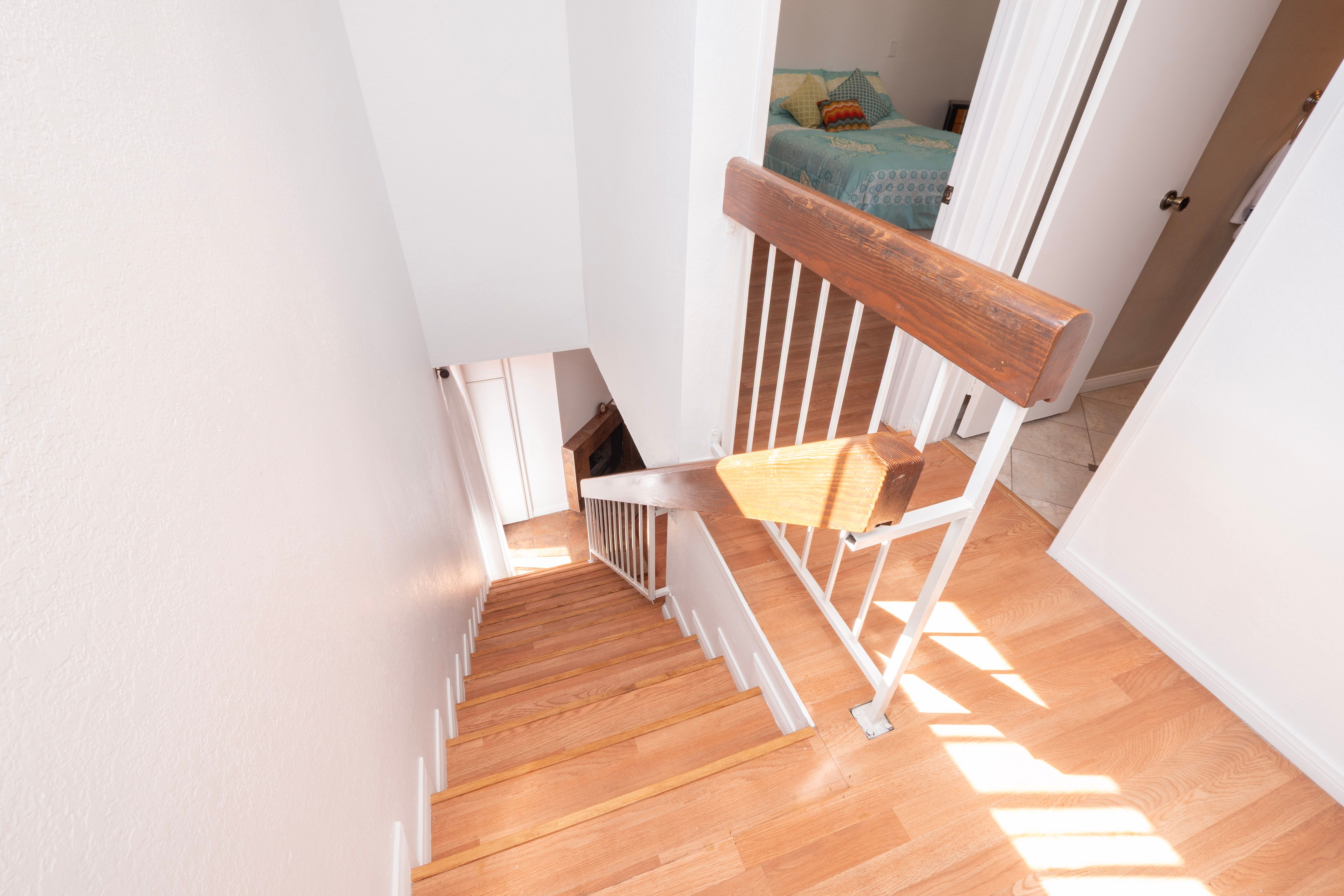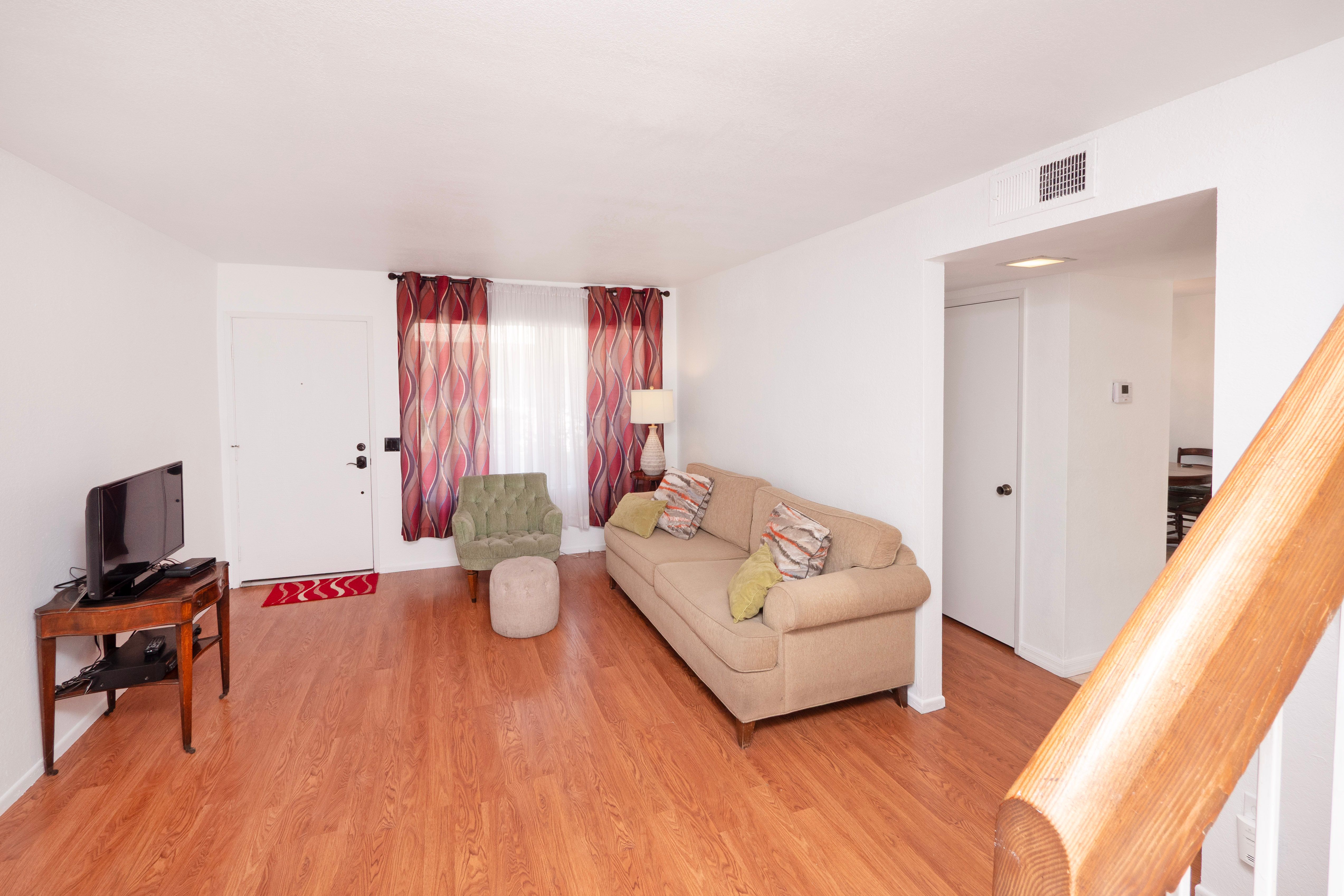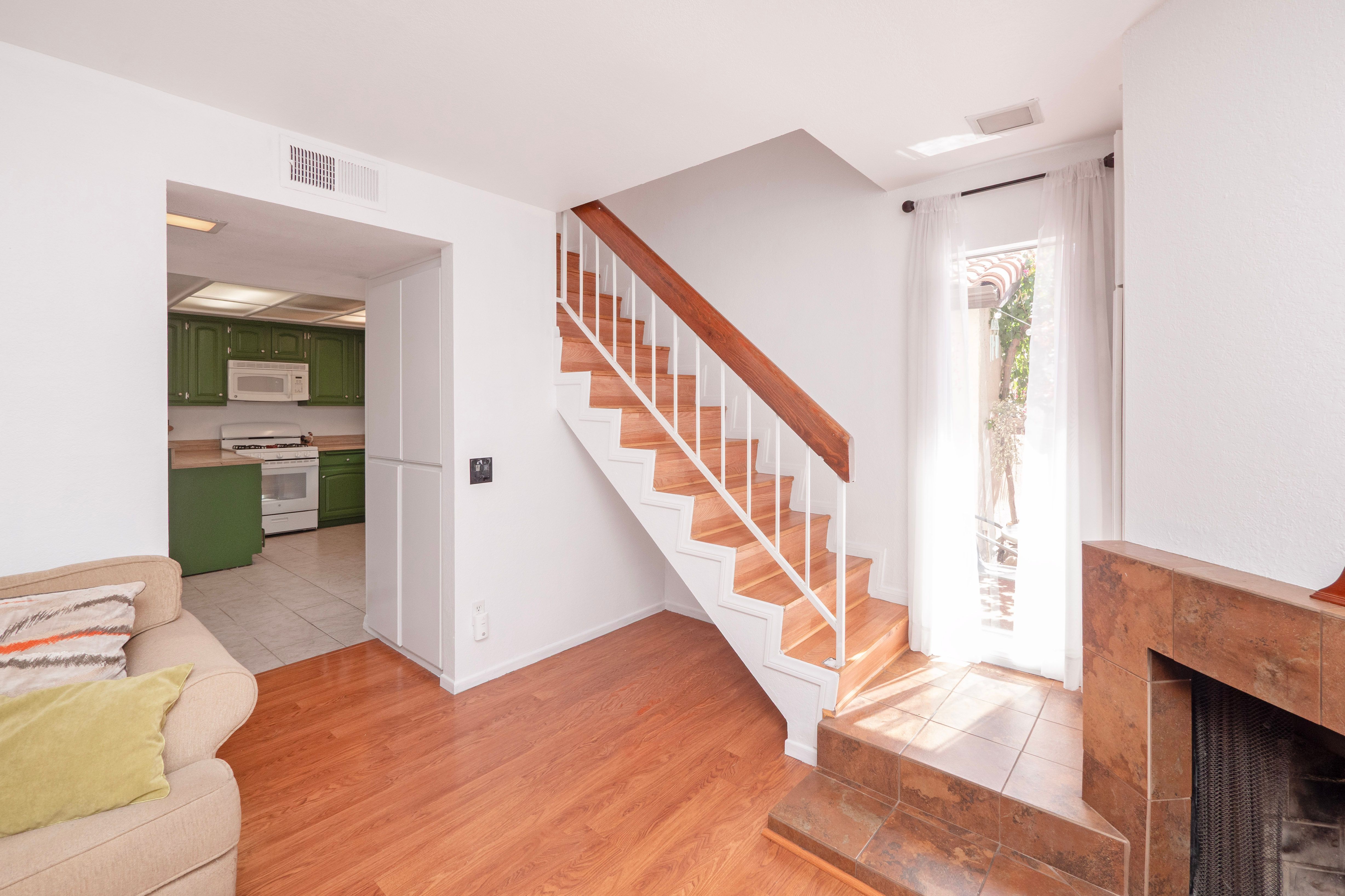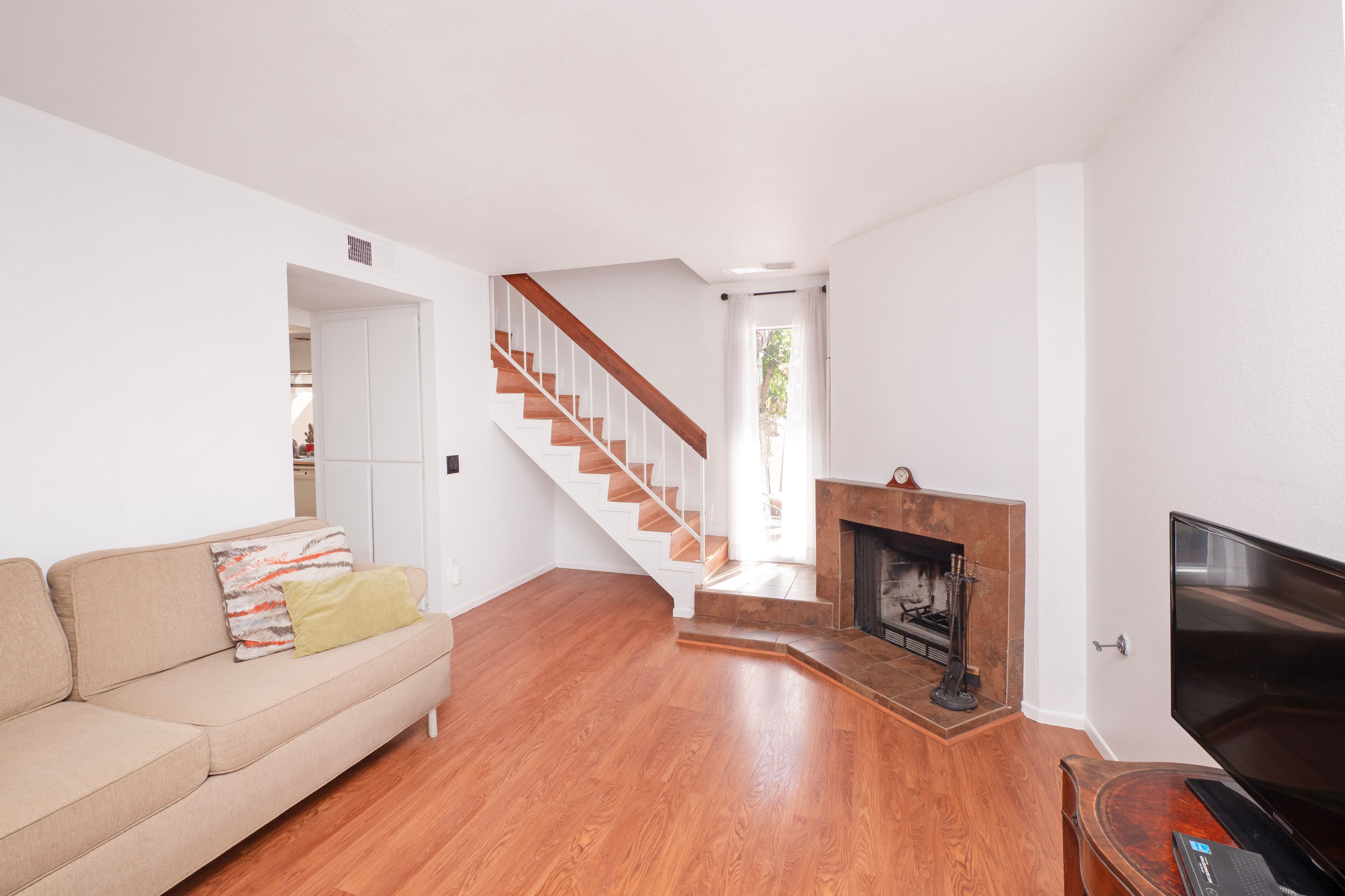 Move-in ready and thoughtfully refreshed, this end-unit PUD offers a bright, easygoing layout with a townhouse-style design that just makes sense—whether you're looking for your first home, downsizing, or adding to your portfolio. Fresh white interior paint pairs beautifully with sage green kitchen cabinetry, creating a clean, modern feel from the moment you step inside. The living room feels comfortable and inviting, anchored by a gas fireplace and an expansive window that brings in abundant natural light, while still connecting naturally to the dining and kitchen areas. Laminate flooring runs through the living room, stairs, and primary bedroom for a cohesive look, while neutral tile in the kitchen and bathrooms keeps things timeless. The kitchen opens to the dining area and features an additional eating counter—perfect for quick meals, morning coffee, or extra prep space. From the kitchen, you’ll find access to a private back patio that’s easy to maintain, complete with an additional access gate and direct entry to the detached garage—offering both convenience and functionality, with enough space to sit and enjoy your morning coffee or unwind at the end of the day. A conveniently located half bath adds to the home’s practical layout. Upstairs, two secondary bedrooms offer comfortable, carpeted spaces, while the primary suite feels open and inviting with higher ceilings, a spacious walk-in closet, and its own private balcony—an ideal spot to unwind. Practical updates include a recently replaced A/C condenser (approximately one year old), newer water heater, newer stove and garbage disposal, and updated window screens—providing added comfort and peace of mind. The community is quiet and well maintained, with inviting walkways and greenbelts that enhance the overall sense of ease and livability. Ideally located in the heart of Colton, just minutes from shopping, dining, schools, and easy freeway access. Nearby amenities include San Bernardino Valley College, Cal State San Bernardino, Loma Linda University & Medical Center, and the San Bernardino Raceway. Well-balanced, light-filled, and easy to live in, this home offers a comfortable lifestyle with thoughtful updates in a central location.
